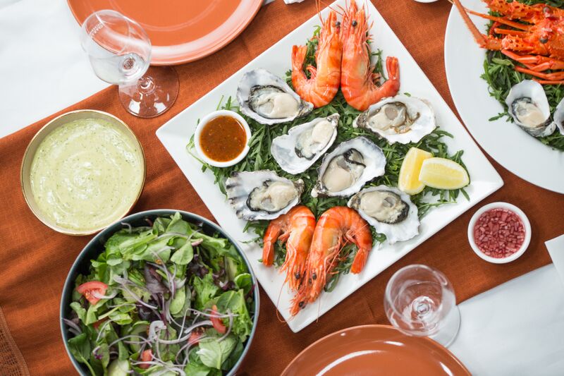 Creamy Garlic Prawn with Steamed Rice and Wombok Salad