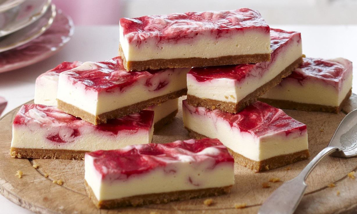 White Chocolate and Raspberry Swirl Cheesecake Slices