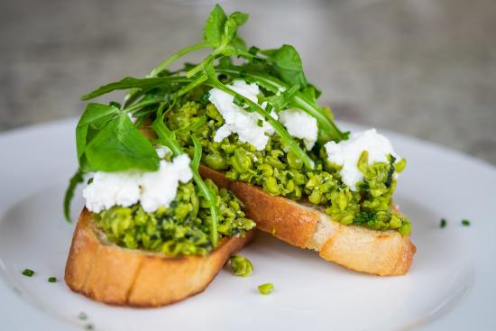 Ingredients: 1 Baguette, thin diagonal slices 150g Peas 1 small handful of chopped mint 1 Garlic Clove, chopped 1 Tbsp Lemon juice 4 Tbsp Olive oil 225g Ric...