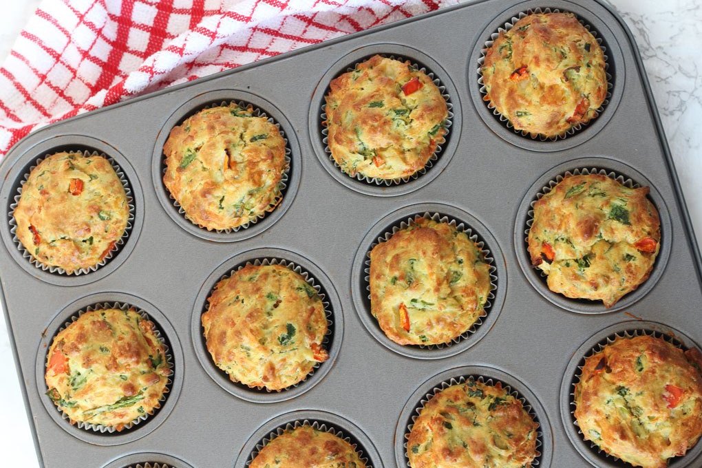 Ingredients: 2 medium eggs 150ml milk 75g butter, melted 150g grated cheddar cheese 1 spring onion, chopped 75g fresh baby spinach, chopped 1/2 red pepper...